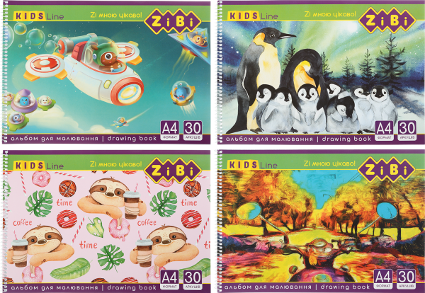 Дитячий альбом для малювання з яскравою барвистою повнокольоровою обкладинкою в 4-х дизайнах. Обкладинка альбому виготовлена з картону із захисним лаковим покриттям. Завдяки оптимальному співвідношенню щільності та пухкості (пористості) паперу, альбом підходить для малювання як олівцями так і фарбами.