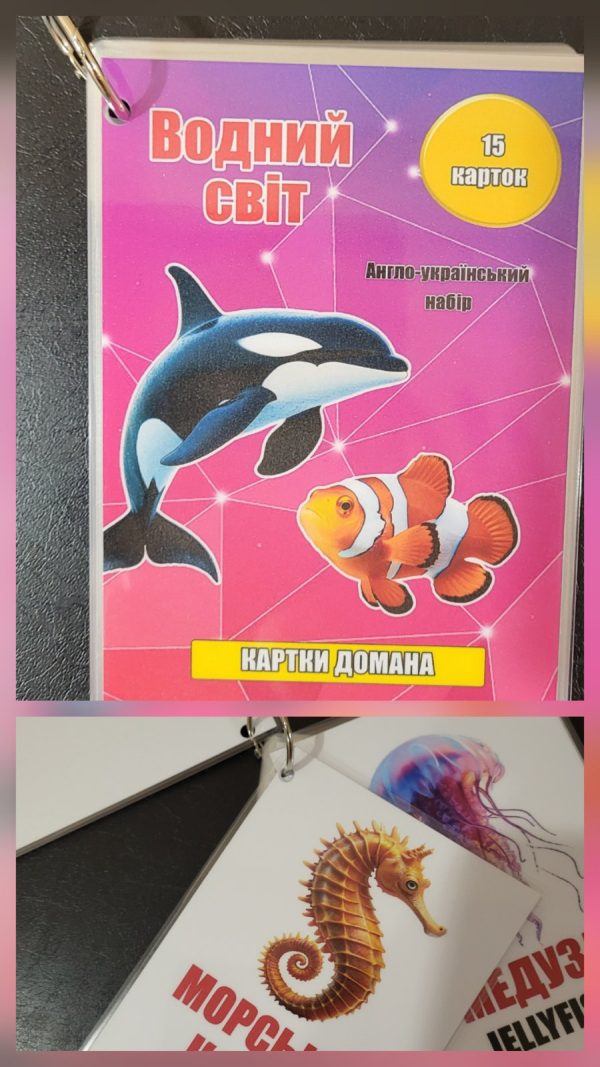 Картки доступні українською та англійською мовами, що допоможе дитині з раннього віку вивчати нові слова та бути на крок попереду у навчанні!