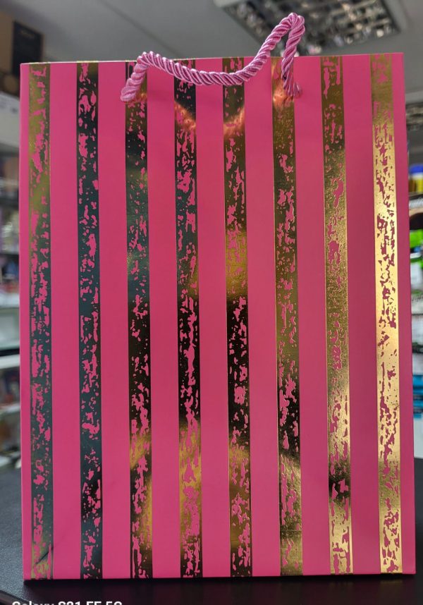 Пакет подарунковий картонний 210 г/м2, 18*24*8см, з фольгою Смужки