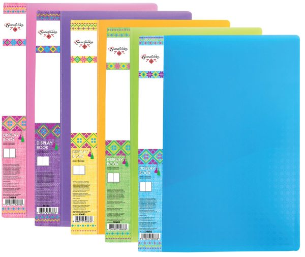 Папка з файлами призначена для зберігання матеріалів і документів формату А4, що вимагають впорядкованості і наочного огляду: звітів, презентацій, комерційних і персональних портфоліо. Виготовлена з пластику товщиною 600 мкм, має 10 прозорих вкладишів, а також кишеню на корінці для змінного етикетки. Вміщує до 20 аркушів стандартної щільності. Перевагою файлової папки є надійна збереження документів у відмінному стані без попередньої перфорації.