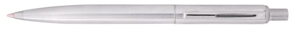 Кулькова ручка з кнопковим механізмом; стрижень – тип PARKER; пише синім; довжина ручки 13 см; металевий корпус сріблястого кольору виглядає особливо привабливо; в комплекті – подарунковий футляр.