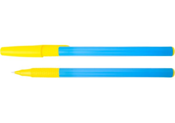 Ручка масляна ECONOMIX NATION 0,7 мм жовто/блакитна, пише синім E10267