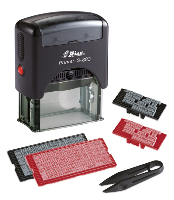 Самонабірний штамп в блістерній упаковці, можливий набір тексту до 4-х рядків. В комплект самонабірного штампу входить: набір знаків S-655(4мм) в кіль-ті 1шт., набір знаків S-654(3мм) – 1шт; пінцет для набору знаків – 1шт ; штамп з розміром поля 47х18-1шт ; змінна текстова пластина для зберігання додаткового тексту – 2шт; змінна подушка синього кольору -1 шт . Змінна подушка S-1823-7, буває синього, фіолетового, чорного, червоного, зеленого кольорів та нефарбована. В одной строке помещается 21 знак высотой 3мм и 17 знаков высотой 4мм.