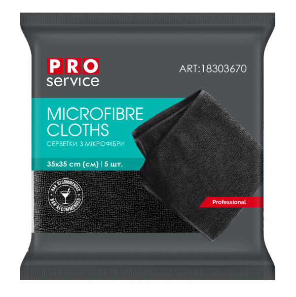 Серветки з мікрофібри, універсальні, BAR AREA, 5 шт, чорні (16шт/ящ) PRO SERVICE