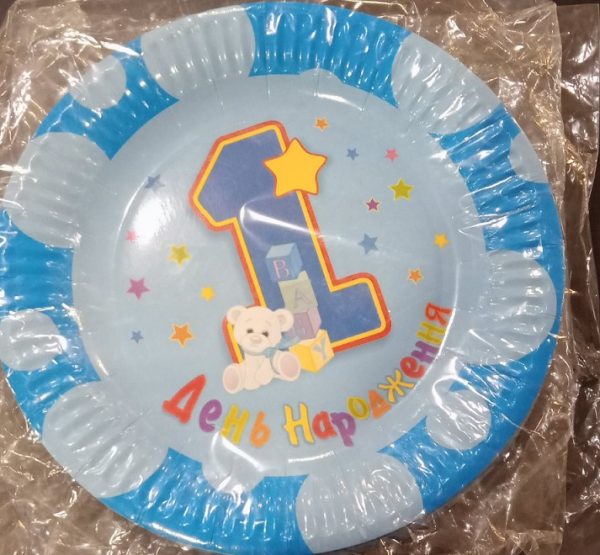 Тарілка одноразова картонна маленька 1 Рік 6шт D18