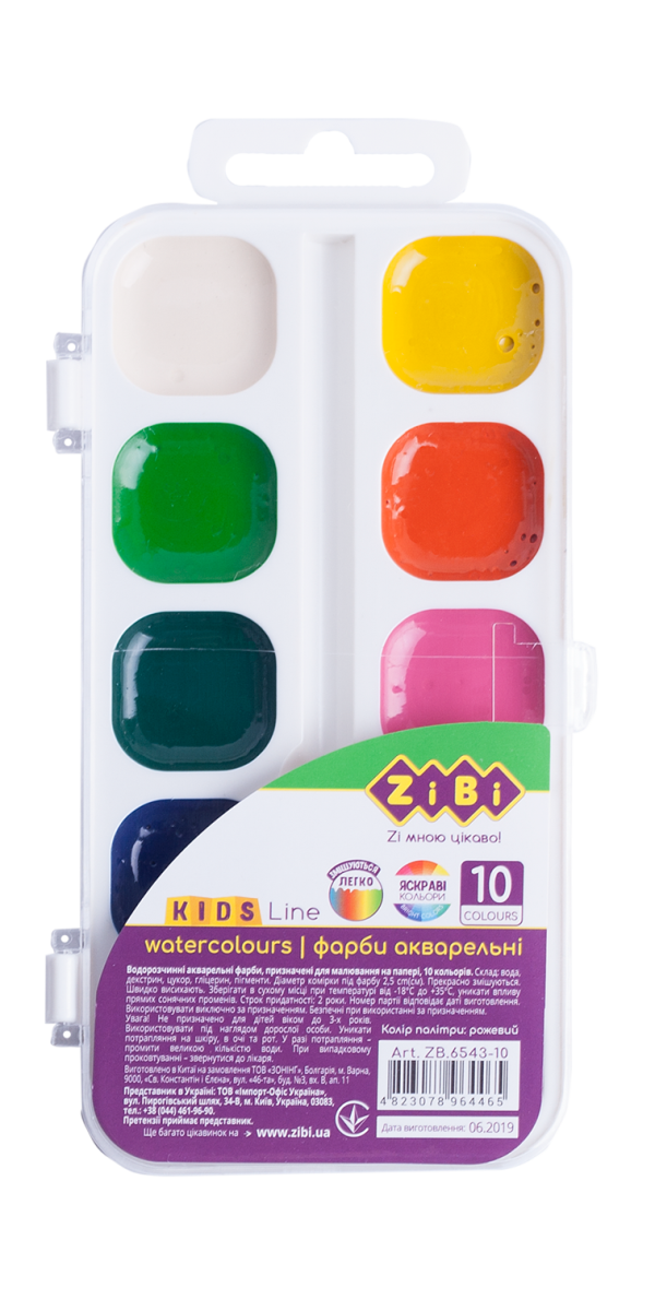 Водорозчинні акварельні фарби, 10 кольорів, білий, KIDS Line